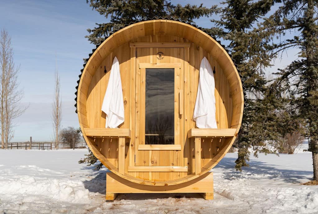 Our saunas are built to last featuring a robust, attractive cedar barrel design with a 26-gauge black metal roof to withstand the elements.